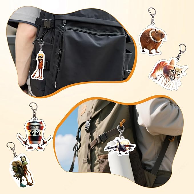 【8種類の精巧なキャラクターデザイン】イタリアンBrainrotキャラクターをモチーフにしたキーホルダー8個セット。それぞれがユニークな動きのポーズと誇張された表情で精巧に再現されており、ネットミームの經典的なイメージを完璧に再現。コレクションと展示に高い価値があります。