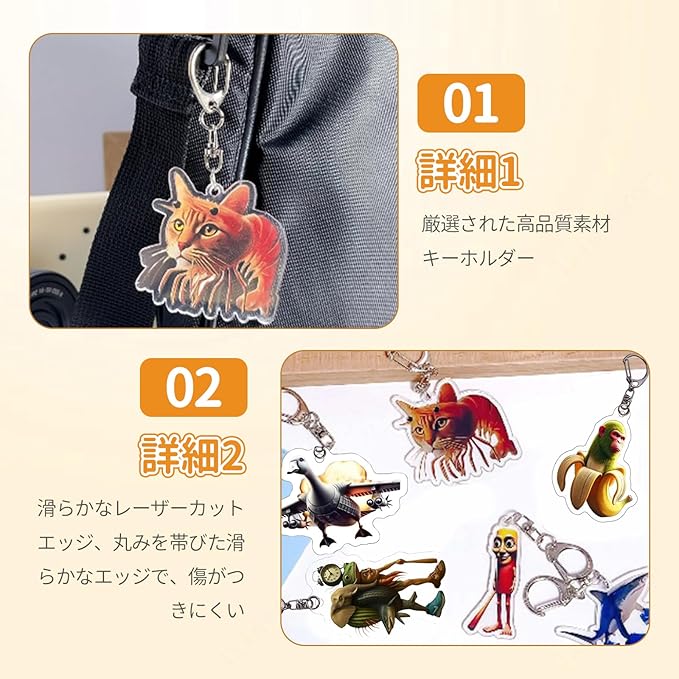【多彩なシーンで使いやすい】キーホルダーは実用的で装飾性に富み、リュックサック、財布、スマホケースやキーリングなどに簡単に取り付け可能。持ち物個性を引き立て、おしゃれでユニークな日常スタイルを手軽に演出します。