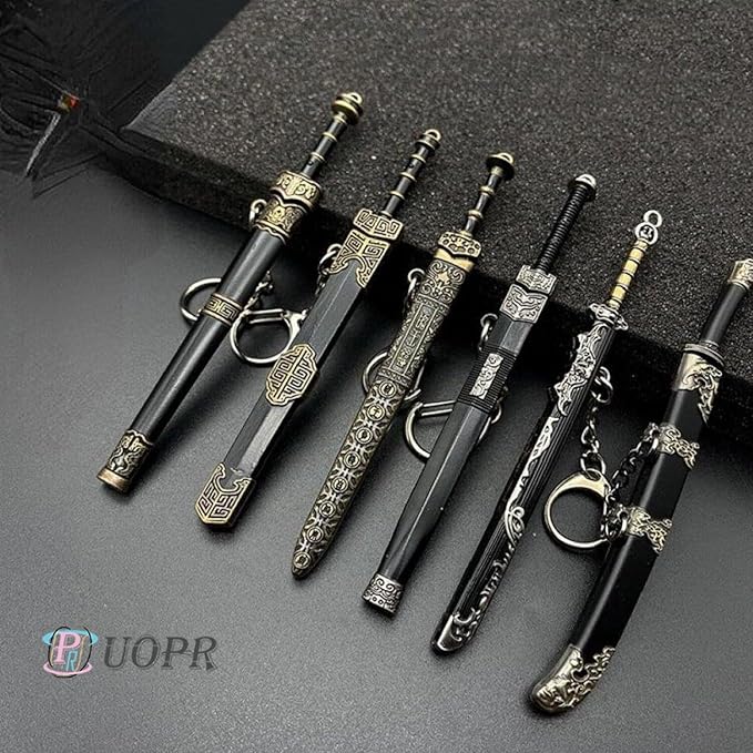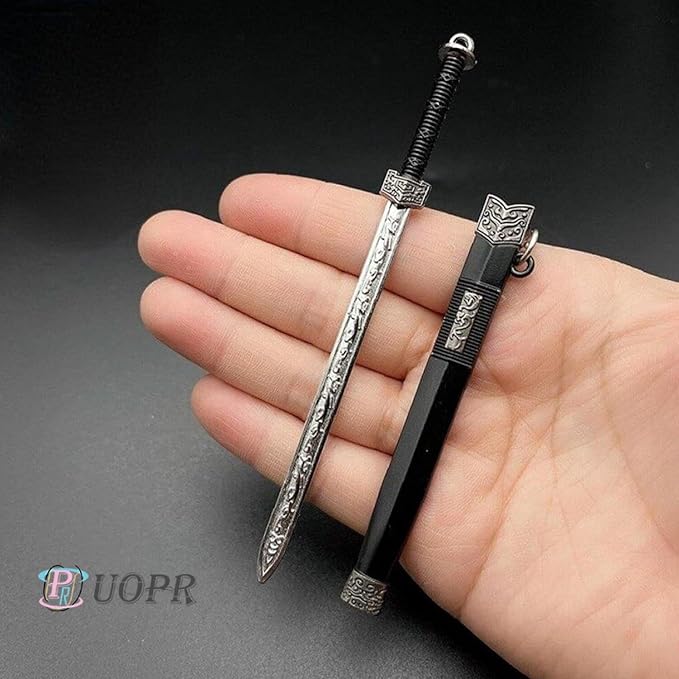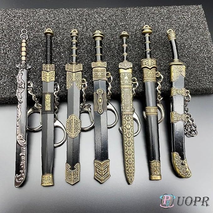 [NEW] キーホルダー ミニ剣 鞘の装飾パターンを備えた 古代のノーカットブレード武器モデル コレクトチンハンナイフペンダント