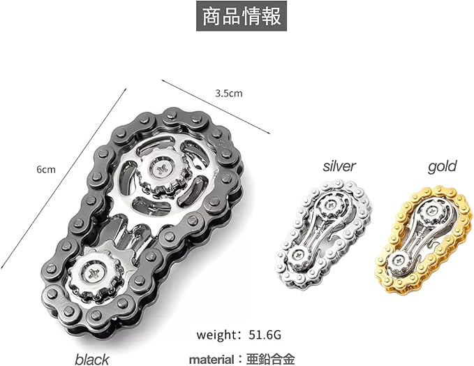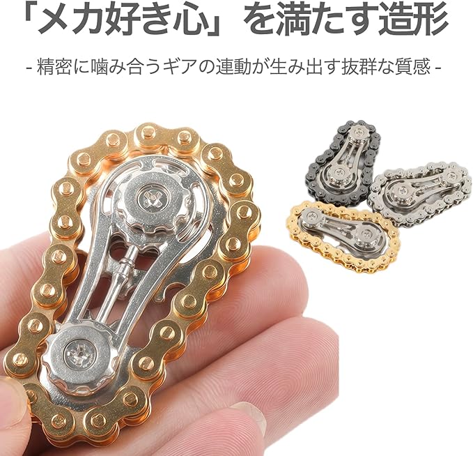 【完成されたデザイン】チェーン、ギア、金属の質感──どの角度から見ても美しく仕上げたフィジェットトイ