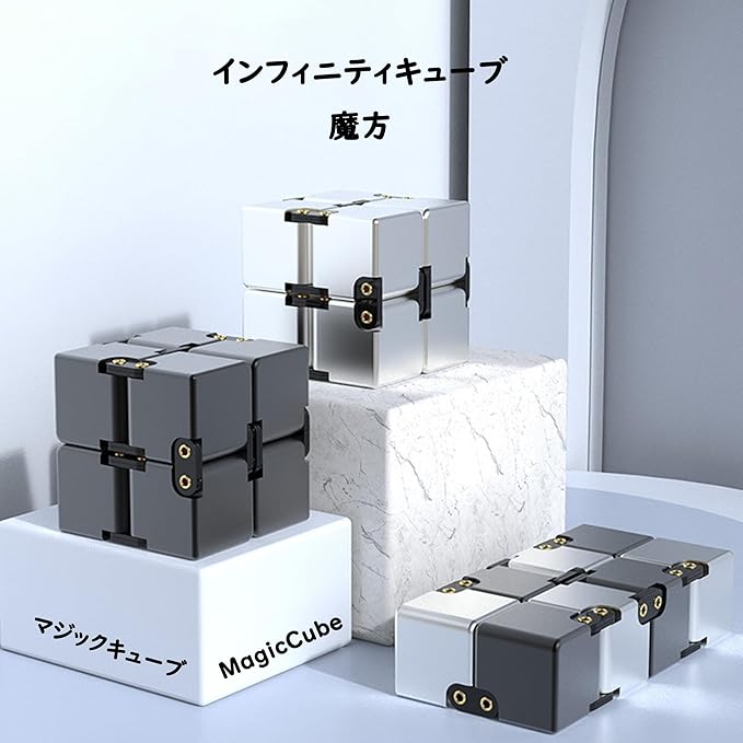 インフィニティキューブ Infinity Cube マジックキューブ MagicCube 立体パズル インフィニティ フィジェット キューブ 大人向けゲーム 頑丈で重い 減圧おもちゃ 持ち運び (標準版 シルバー)