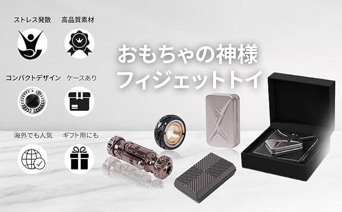 【製品の特徴】高品質の素材で製造されたマグネット式フィジェットスライダー。従来のプラスチック素材にはない耐久性・安全性を実現。見た目もスタイリッシュで、会社や学校に持っていっても違和感ありません。表面の模様を指でなぞるだけでもストレス発散に。