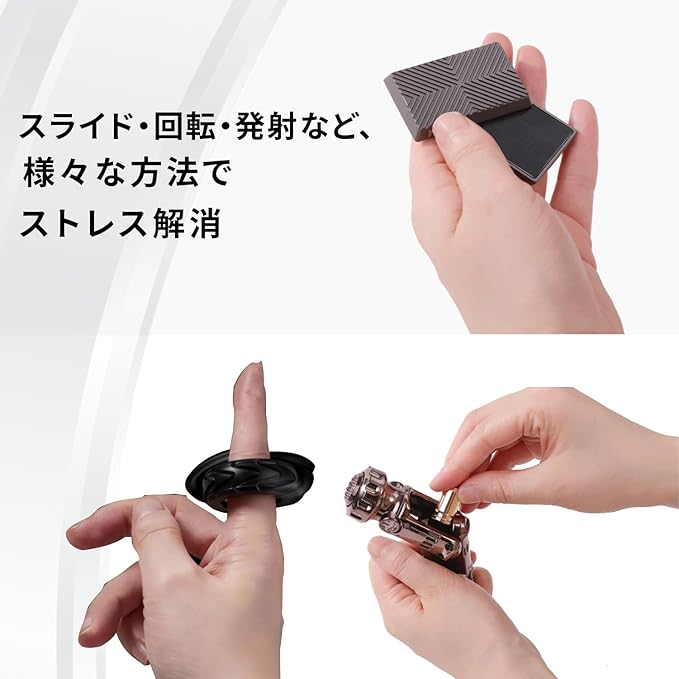 【使用方法】製品を片手で持ち、指でずらす事でストレスの緩和になります。仕事中に利用する事で集中力のアップ、イライラした時に使う事でストレス解消、運転の休憩時の眠気覚ましなど、利用方法は様々。動かすだけで楽しいので、暇つぶしや子供のストレス解消にベストです。
