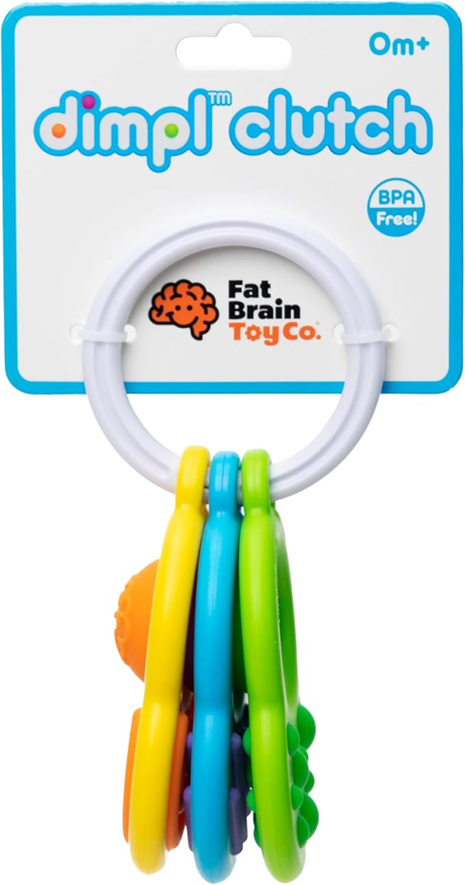 アメリカ発 知育玩具HOTFat Brain Toys (ファットブレイントイズ) 社の赤ちゃんおもちゃ「Dimpl Clutch (ディンプル クラッチ)」で、ポコポコ遊びを楽しみましょう♪3種類のフィジェットトイがキーホルダー式になっていて、ベビーカーやバッグにつけることができるので持ち運びに便利!
