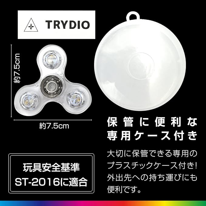 子供から大人まで時間を忘れて夢中になる光る回転スピナーです。長時間の移動・待ち時間・ストレス解消などにもおすすめのアイテムです。汚れや傷が付かないよう、スピナーを大切に保管できる専用の収納ケース付き!コンパクトかつシンプルで外出先への持ち運びにも便利です。