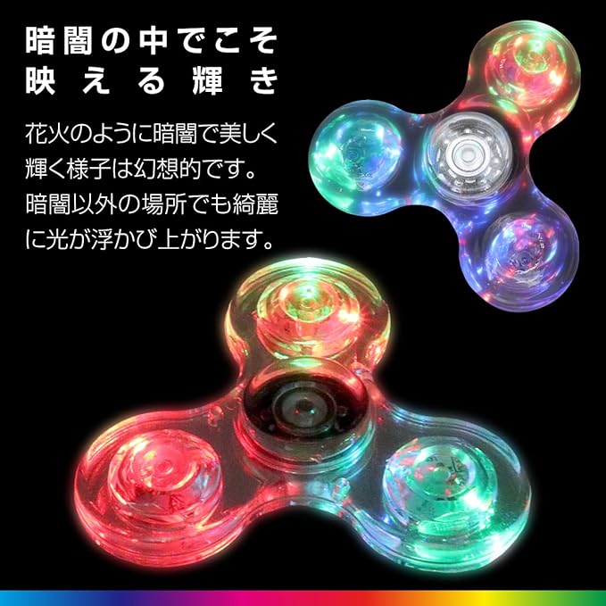 花火のように暗闇でキラキラと輝く様子は幻想的な世界を映し出します。暗闇以外の場所でも、クリスタルのように綺麗に光が浮かび上がるのも特徴です。心惹かれる光るスピナーは、お子様の誕生日・クリスマス・記念日などお祝いのプレゼントとして喜ばれること間違いなし!