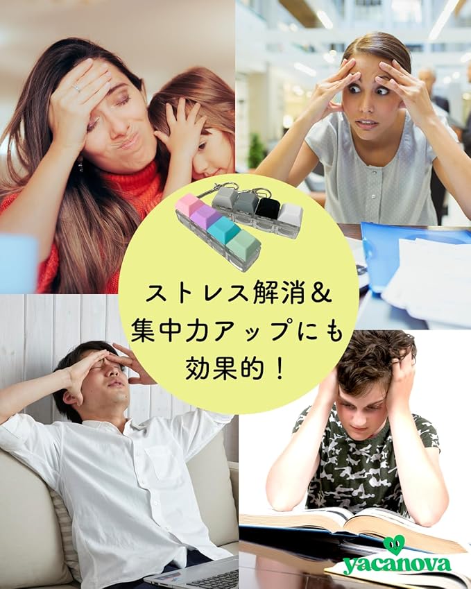 キーボードをタイピングしたときの指先の感覚や「カタカタ」「カチカチ」といった音をいつでもどこでも体験できるキーボードキーホルダー。手や指先を動かす動作は「フィジェット」と呼ばれ、緊張や集中を高めるために有効とされています。ストレス解消、手持ちぶさたの解消にも役立つことから、「フィジェットアイテム」「フィジェットトイ」などと呼ばれる手のひらサイズのガジェットやおもちゃとしていろいろな形状や動きのものが発売されています。