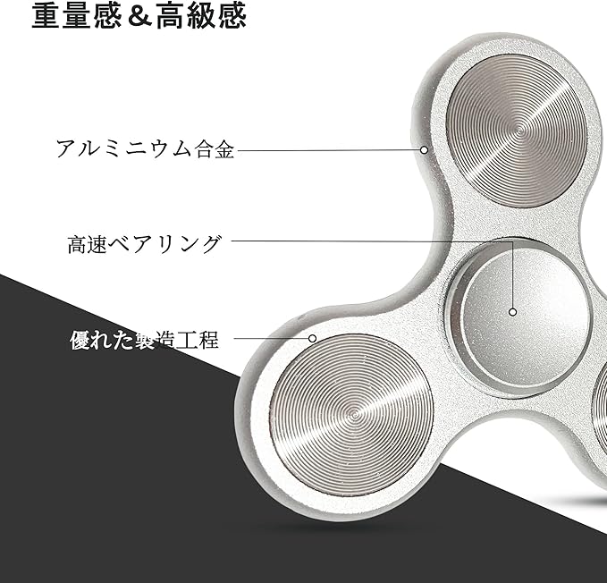 ハンドスピナー ストレス解消 グッズ メタル製 高級 ハンド スピナー よく回る 高速ベアリング 4~7分 長時間回転 フィジェットトイ ストレス発散 暇つぶし ADHD 自閉症 指先スピナー おもちゃ おもしろい fidget spinner 大人 子供ギフト シルバー