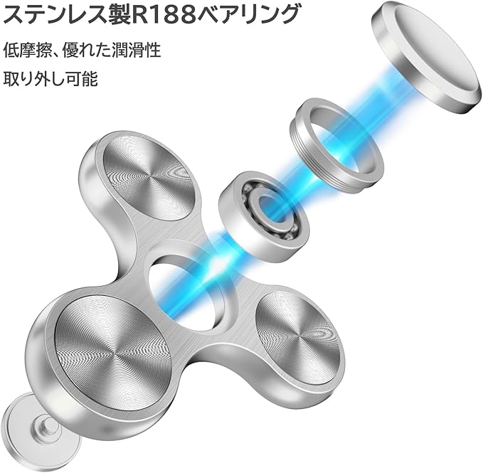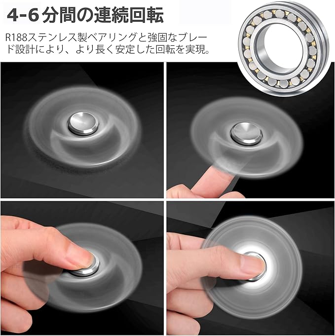 【優れたベアリング】内部軸受は、耐久性、耐摩耗性、潤滑性に優れたR188ステンレス製静音ボールベアリングで、長時間回転可能で、通常4~6分回転させることができる。スムーズな回転と低摩擦には驚かされることだろう。