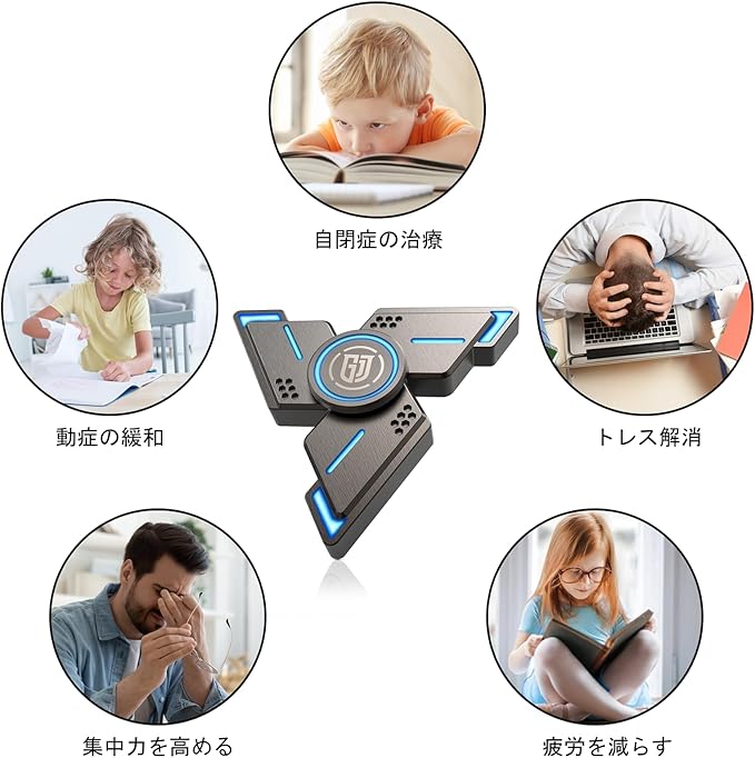 非常に良いストレス解消 グッズ。不安を減らし、自閉症、ADHD(注意欠陥多動症)を緩和するのに最適です。回転することで退屈な時間をつぶしたり、楽しんだり、注意力を高めたり、深く考えたりすることができます。