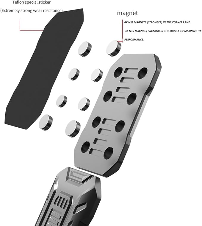 【亜鉛合金と強力マグネットによる高品質仕上がり】本体には亜鉛合金を使用し、美麗な彫刻パターンを施しています。コーナーに 4 個の N52 強力マグネット、中央に 4 個の N35 マグネットを配置して性能を最大化。強力な磁気抵抗感とスムーズなスライドを両立しています。CNC 切削加工による精密なパネル構造と陽極酸化処理による摩耗防止表面で、手応えの良い重さ(約 120g)と滑らかな触感を実現しています。パネルが軽量であるため、初心者でも簡単にトリックができ、組み立てが外れにくいのも特長です。