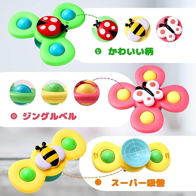 ハンドスピナー 赤ちゃん 玩具 よく回る 知育玩具 お風呂 水遊び おもちゃ 0歳~3歳 人気 誕生日プレゼント かわいい昆虫 3個入