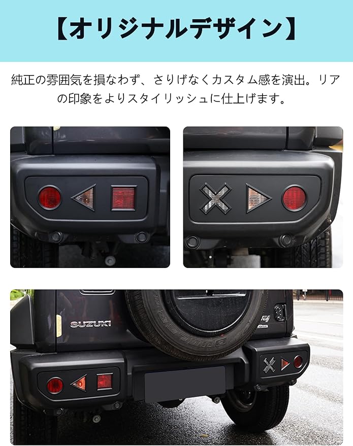【オリジナルデザイン】:純正の雰囲気を損なわず、さりげなくカスタム感を演出。リアの印象をよりスタイリッシュに仕上げます。