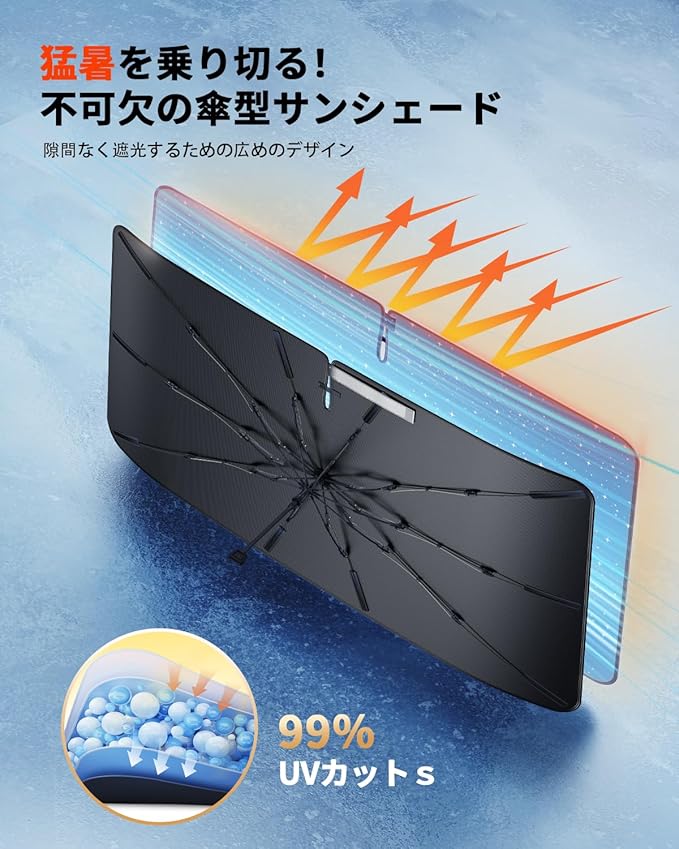 【紫外線と熱気をカット、サウナ車にさようなら】猛暑には、車内に戻る時に『ドアを開けた瞬間の熱風』や『ハンドルが熱すぎて握れない』といった経験はあるんでしょうか?クラウンスポーツ専用のフロントサンシェードで、愛車を熱から守りましょう。ECOZENのクラウンスポーツ 用サンシェードは、革新的な断熱素材と環境に優しいコーティングで、99%の紫外線をカットし、30秒で10度の温度低下を実現。8時間の直射日光でも快適さを保ちます。