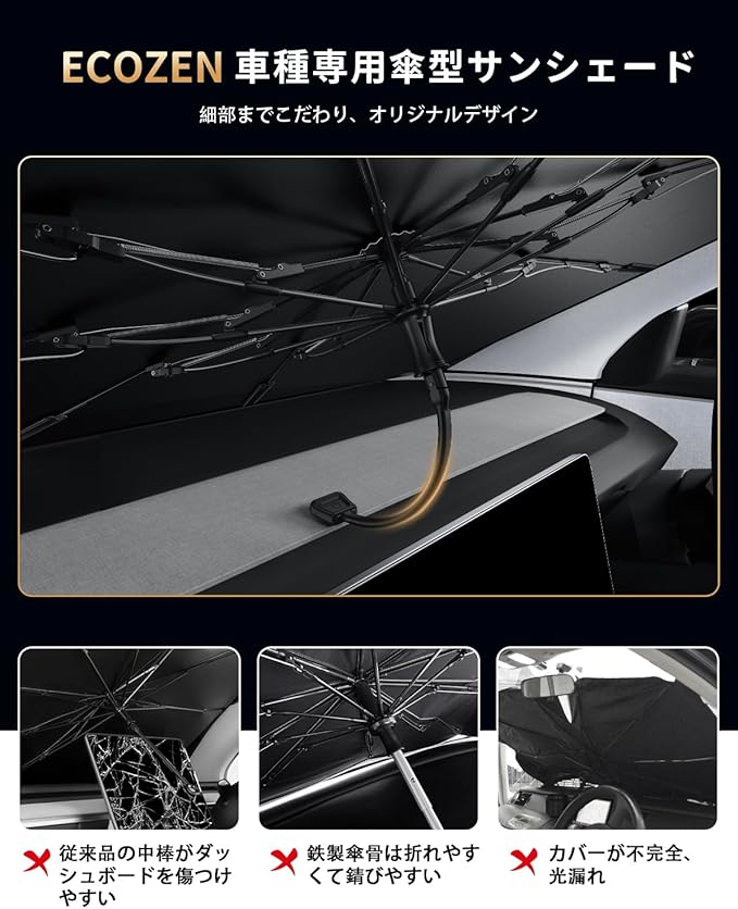 ECOZEN 【2025革新デザイン】トヨタ クラウンスポーツ 16代目 フロントガラス 専用 傘式 サンシェード 曲がる中棒 露先保護カバー延長設計 新型 クラウン スポーツ 35系 傘型サンシェード 隙間なく遮光 頑丈 ガラス繊維製骨 紫外線カット 日焼け対策 ドラレコ対応 ワンタッチ 内装劣化防止 車内泊 露天駐車 Crownsports クラウンスポーツアクセサリー カー用品
