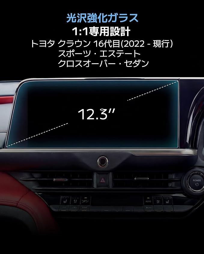 トヨタ クラウンスポーツ クラウンエステート クロスオーバー セダン 専用 ナビ ガラスフィルム 12.3インチ クラウン 16代目 ナビ 保護フィルム 9H 傷防止 HD 極薄 高感度タッチ 自己吸着 クラウンスポーツ アクセサリー 内装 カスタムパーツ