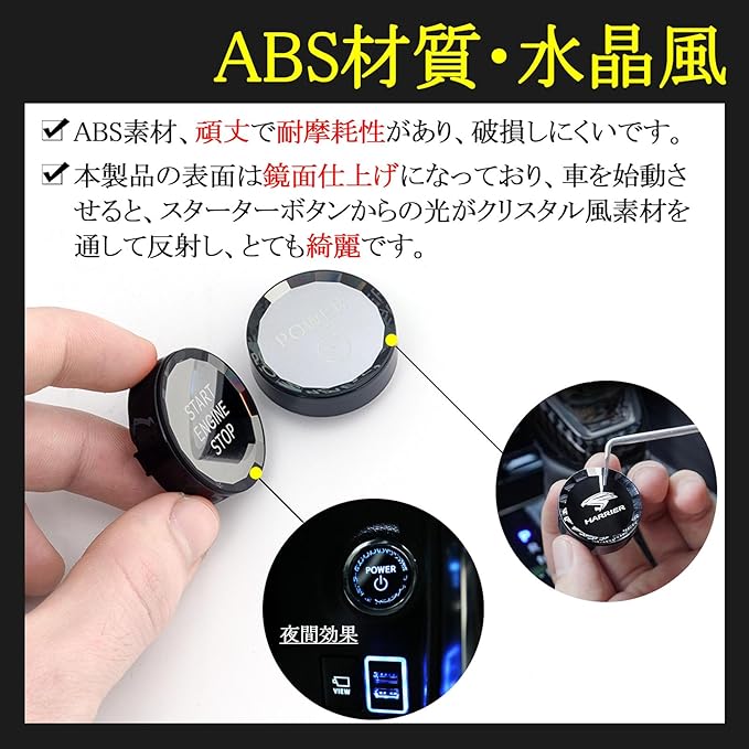 【簡単な取り付け】嵌め込み型なので、純正のカバーを外してから穴に合って嵌め込んでいいです。①取り外し工具でエンジンスタートリングを取り外します。②付属する透明の工具でスタートボタンを外します。③本製品を取り付けます。④純正のエンジンスターターリングを元に戻して取付完了です。