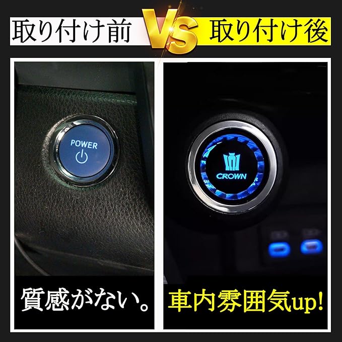Karell クラウン 30系 エンジンスタートボタン 3D クリスタル クラウン 30系 アクセサリー エンジンスタートボタンカバー クラウン 30系 プッシュスタートスイッチ カバー クラウン 30系 スタートボタンカバー カーアクセサリー 車内 おしゃれ エンジンスタートカバー 水晶風専用設計 説明書付き