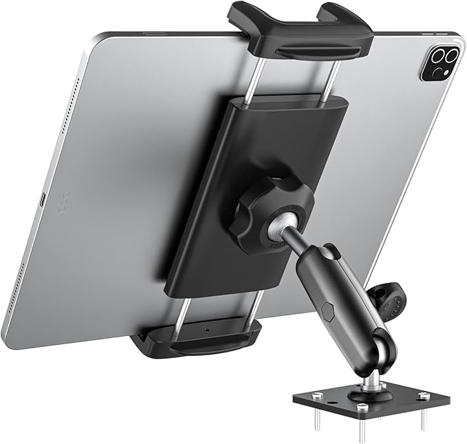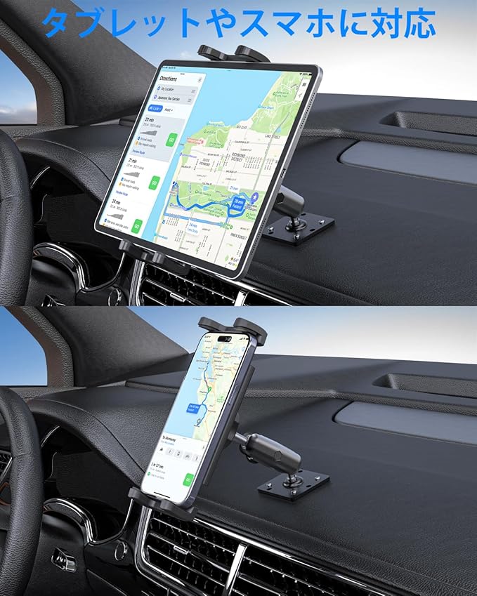 【適用場所】この車タブレットホルダーは、7つの取り付け穴があり、2組のネジが付属しています。平らな表面に取り付け可能で、ダッシュボード、車/トラック/RVのコンソール、壁、机などに適しています。