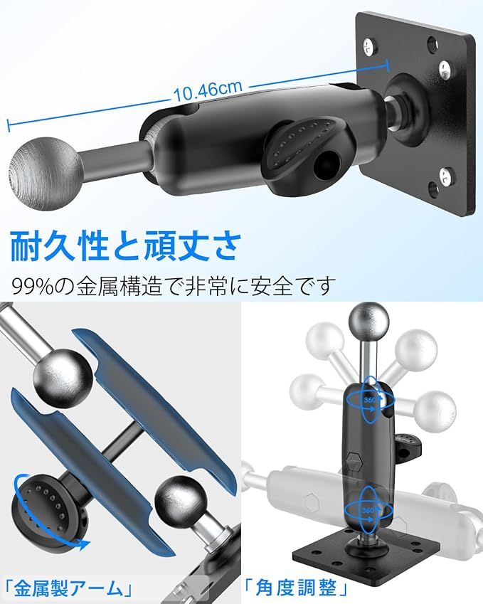 【角度調整可能】iPad用車載ホルダーは、2つの360 回転する金属ボールヘッドと、7.1センチの取り付けアームを備えており、お好みの快適な角度に簡単に調整できます。このスタンドを使用することで視界が遮られることなく、両手を自由に保ちながら道路に集中でき、デバイスに便利にアクセスできます。