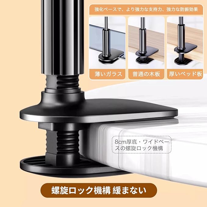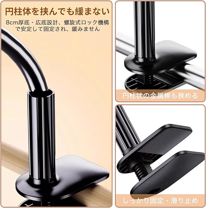 タブレット スマホ 両用 スタンド 寝ながらタブレットスタンド 全機種対応 寝ながらスマホ 携帯360自由回転 土台強化 安定性 柔軟自由調節 フレキシブルアーム付き 幅広い互換性 4-10.6インチ 手帳型ケースにも対応可能