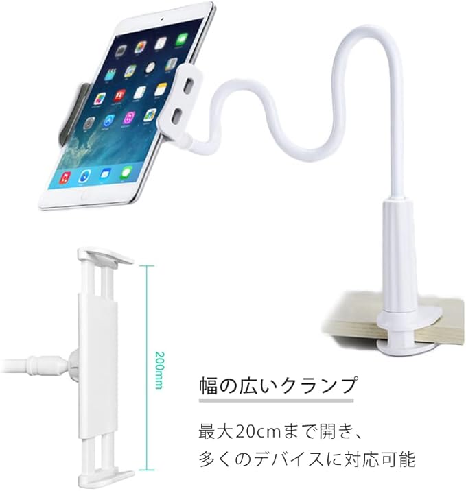 スマホスタンド タブレット スマートフォンスタンド アームスタンド 卓上 ipad スマホ ホルダー 寝ながら モニター クリップ おしゃれ ベッド ホワイト stand-002