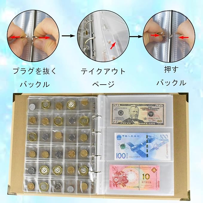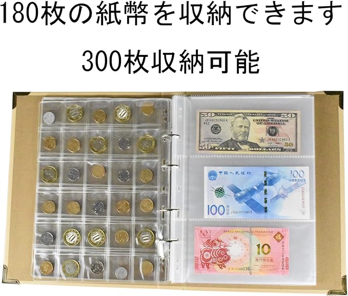 6KJFEIWGコインアルバム 記念 硬貨コレクションケース ンアルバム (180ポケットワールド紙幣ホルダー300コイン) アルバム コインケース プラスチック