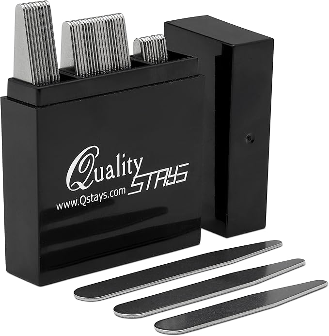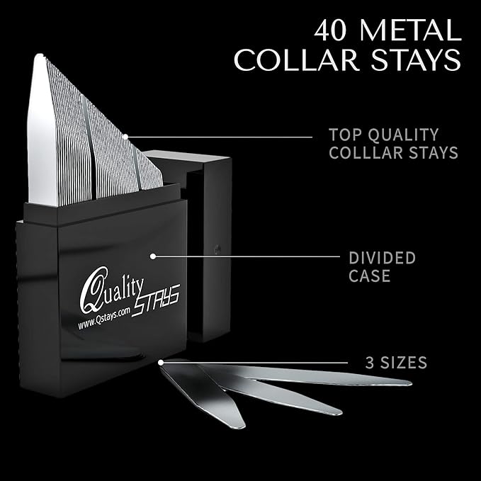 Quality Stays メタルカラーステー メンズ – メンズドレスシャツカラーステー 40個セット 3サイズ 分割ボックス入り, シルバー, Multi