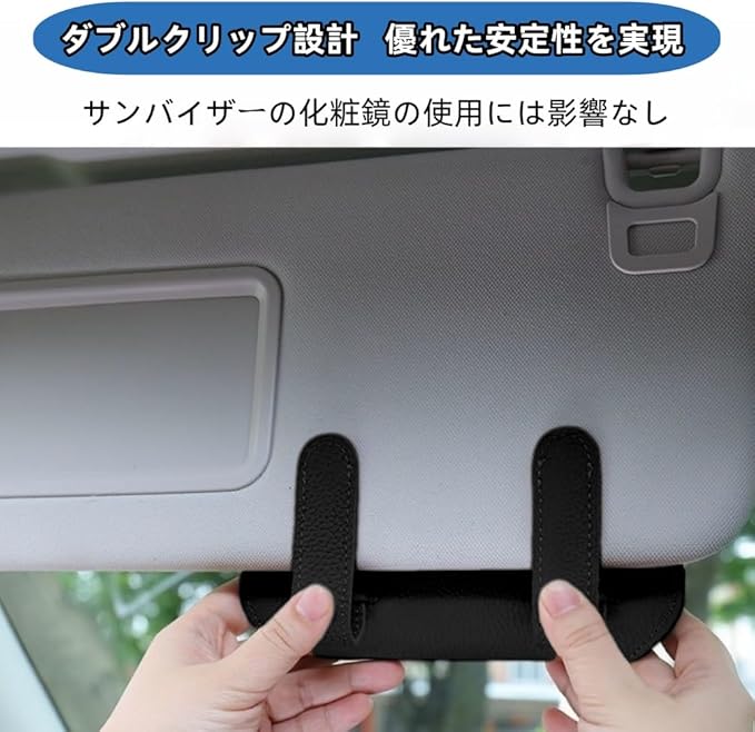 【取り付け簡単・安定性よい】この車用眼鏡クリップは簡単に取り付けられます。サンバイザーにクリップするだけで大丈夫です。この眼鏡ケースには2つのクリップが付属しており、より安全で安定した状態を維持します。さらに、サンバイザーだけでなく、車のグラブハンドルなどにも使用できます。
