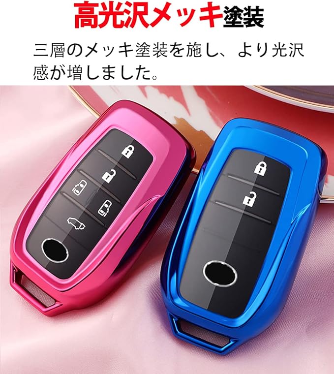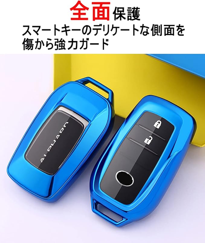 トヨタ 専用 クラウン クロスオーバー ハリアー 80系 プリウス 60系 ハイラックス GUN125 ランドクルーザー 200系 アルファード ベルファイヤー RAV4 PHV GRカローラ GRヤリス グランエース キーケース キーカバー (単体、ブルー)