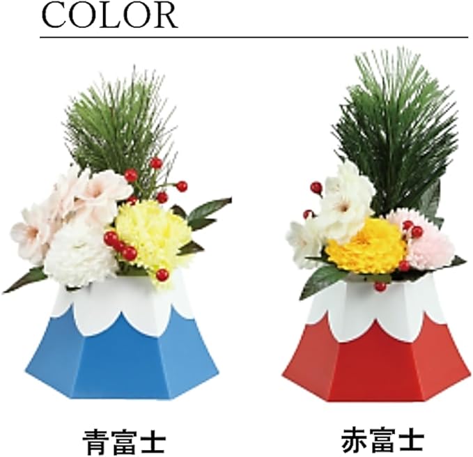 正月飾り 卓上 ソープフラワー アレンジ 松飾り フレグランスフラワー 造花 新年 新春の花 菊 富士山 置物 バッグ付き (青富士)