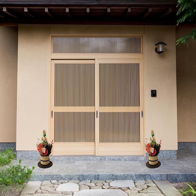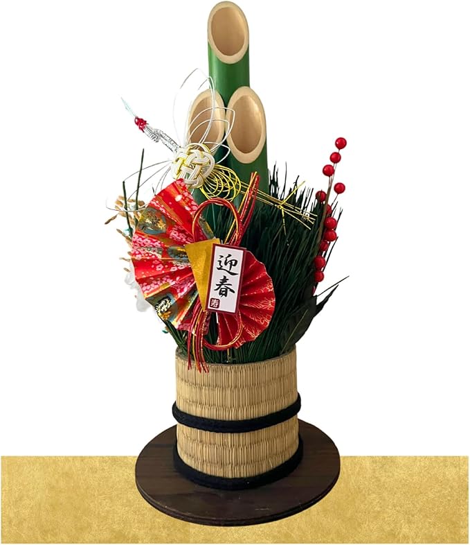 NEKOMI 華やかな扇 和風迎春ミニ門松 お正月飾り 玄関 門松 迎春門松 正月飾り (40㎝1鉢吉祥迎春門松)
