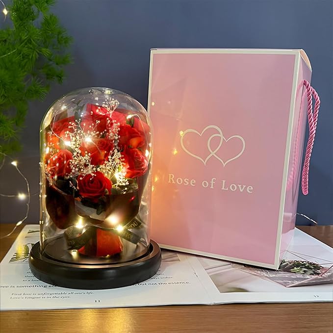 ソープフラワー LangRay 枯れない花 造花 花束 バラ 石鹼花 石鹼フラワー 贈り物 ギフト 敬老の日 母の日 開店祝い 誕生日 記念日 お見舞い 感謝 お礼 プレゼント ギフトボックス (LED 赤いバラ)
