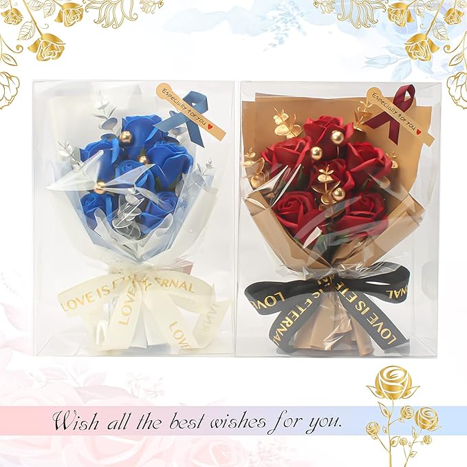 【製品の特徴】1.われわれはPVCプレゼントボックスを使ってブーケを入れます。こうすると、ブーケが直立で置き、展示できます。しかも、石鹸花を外に暴露しなくままで埃の影響を受けなくなります。長期に保存でき、いつもきれいになれます。部屋や客間などの場所に置いて永遠にエレガントの置物です。2.ギフトバッグのサイズ 特に、他のギフトと一緒にプレゼントするのに最適な大きさのギフトバッグを選びました。他のプレゼントと組み合わせなく、単独で贈るのにも全体の美観を損なわない。