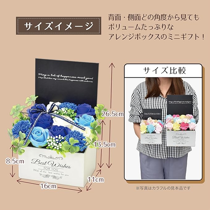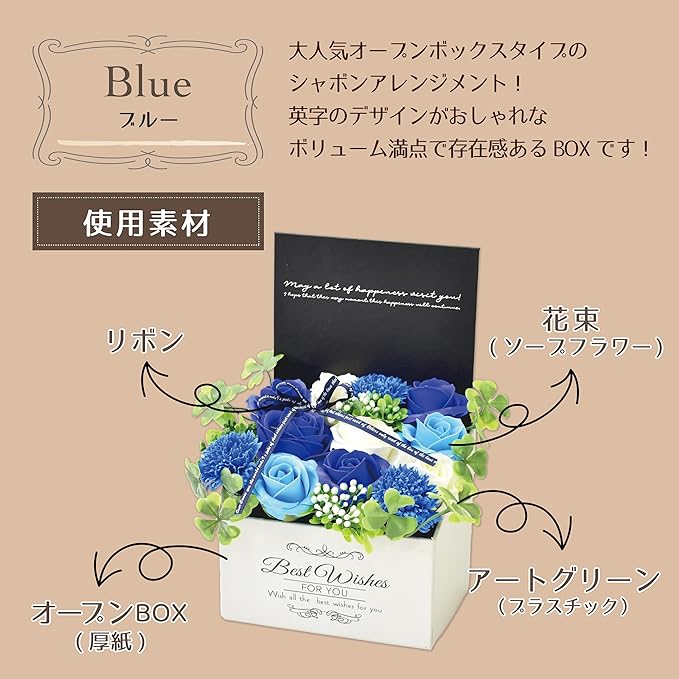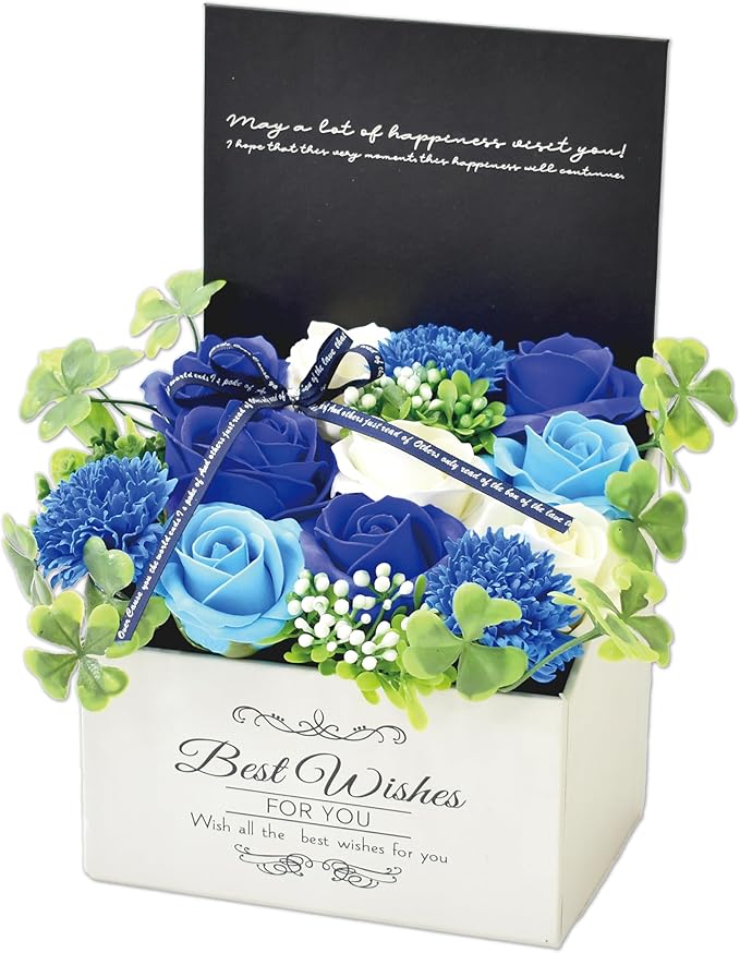 ポピー名古屋 ソープフラワー シャボンフラワー 造花 ギフト プレゼント 12輪ブーケ バラ ボックス 約16cm MK-009 ブルー