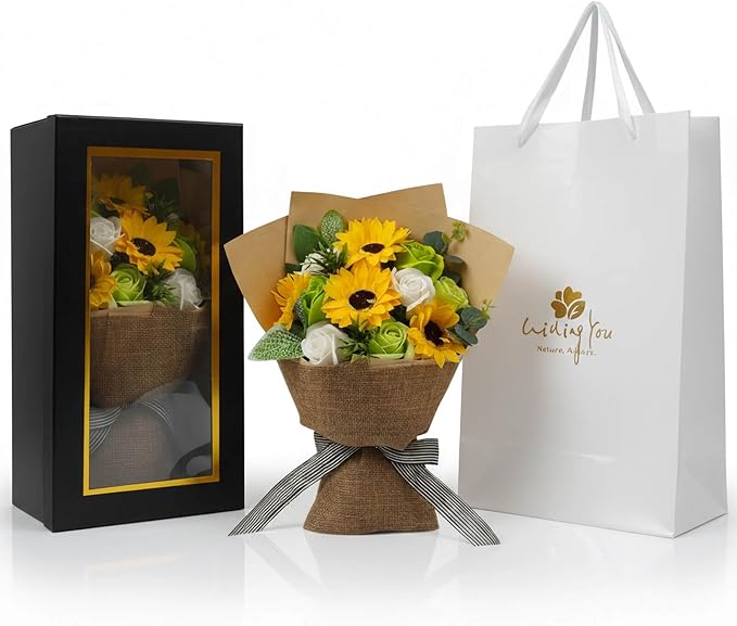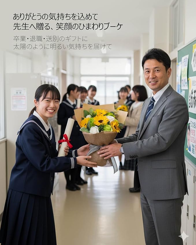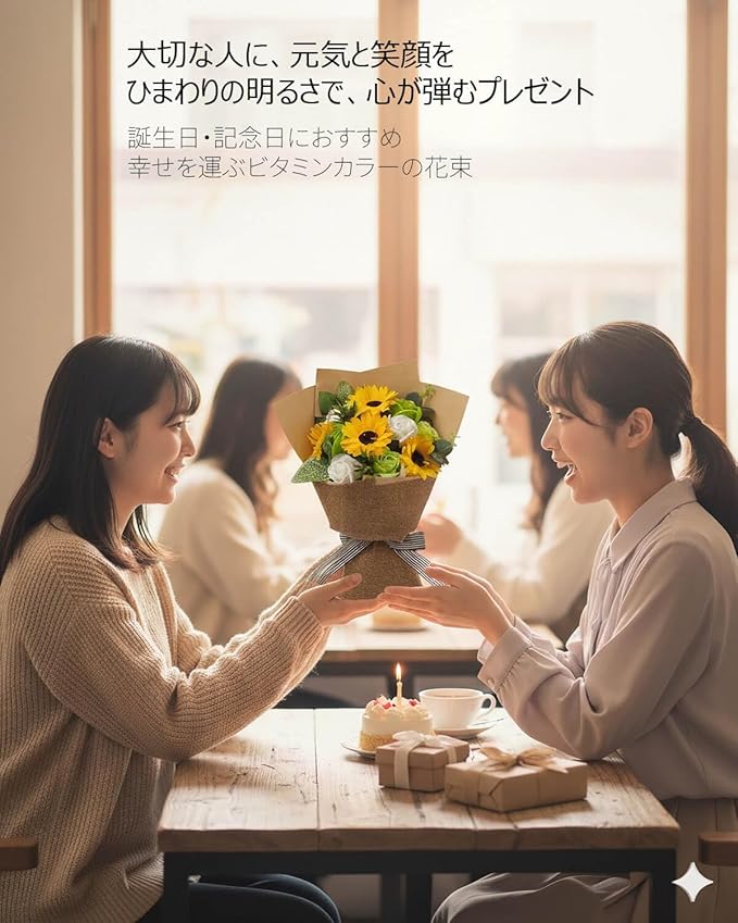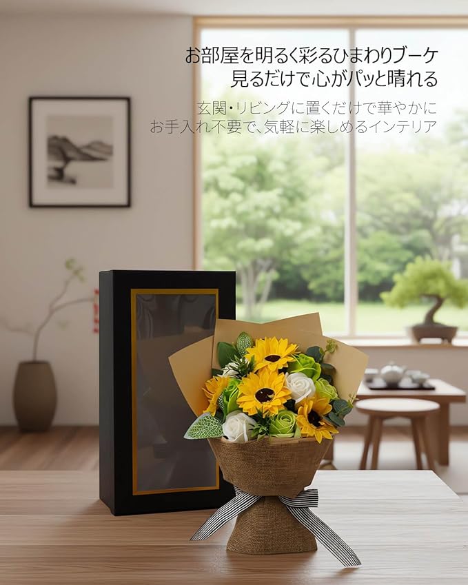 ソープフラワー 花束 ギフト ひまわり プレゼント 石鹸の花 シャボンフラワー インテリア 雑貨 母の日 誕生日 卒業式 開店 結婚 退職 還暦 発表会 ディスプレイ フラワー ひまわり ローズ 薔薇の花 桜 アレンジ 枯れない 花 イエロー