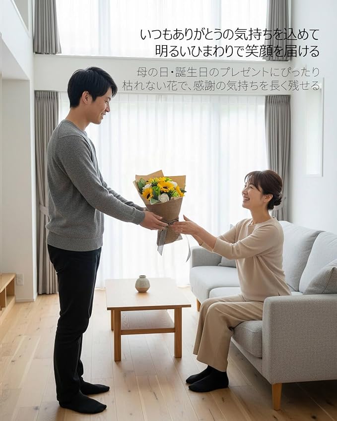 2. 多用途に対応するプレゼント 誕生日、結婚式、記念日、クリスマス、母の日など、さまざまなシーンで使えるソープフラワーギフト。ビジネスギフトとしても、引越し祝いや開店祝い、退職のお祝いなど、幅広い用途に対応。季節ごとのイベントにもピッタリで、感謝やお祝いの気持ちを込めたプレゼントとして多くの方に選ばれています。