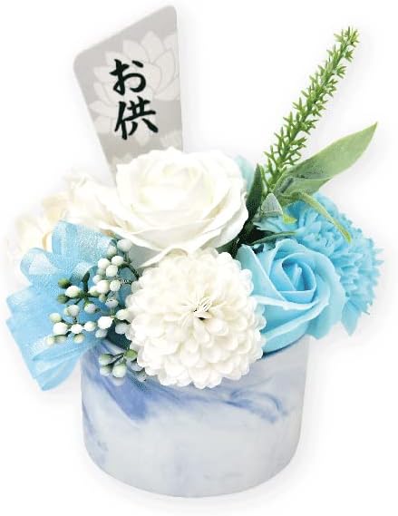 ポピー名古屋 ソープフラワー シャボンフラワー 仏花 お供え花 造花 フラワーポット 菊 バラ 花瓶 約16cm クリアケース付き S-159 ブルー