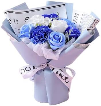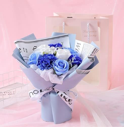 SCAMPER ソープフラワー 誕生日 プレゼント 女性 人気 花束 造花 ギフト ドライフラワー インテリア 結婚記念日 発表会 敬老の日 母の日 退職 祖母 彼女 送別会 専用のギフト ブーケ プレゼント 記念日 贈り物 (青)