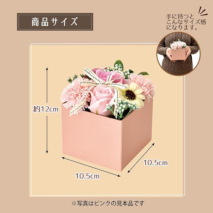 【ギフトに最適】まるで生花のようなリアルで繊細なディテールのボックスタイプです。クリアバッグが付いているので、そのままプレゼントとしてお渡しすることができます。玄関やお部屋にそのまま飾って頂くだけで、ほのかな香りが楽しめるインテリアや飾りになるおしゃれな芳香剤として女性にも男性にも喜ばれるフラワーギフトです。