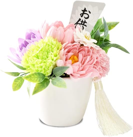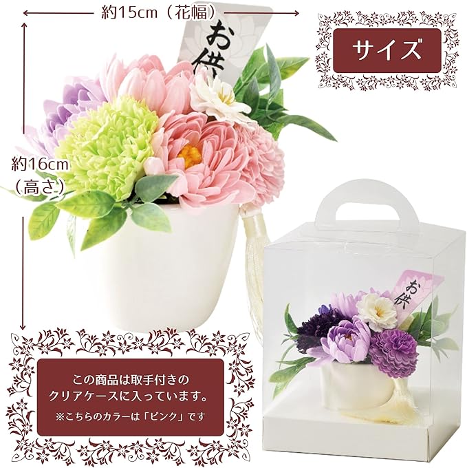 ポピー名古屋 ソープフラワー シャボンフラワー 仏花 お供え花 造花 フラワーポット 菊 花瓶 約16cm クリアケース付き S-131 ピンク