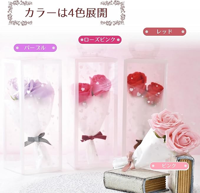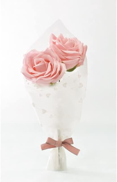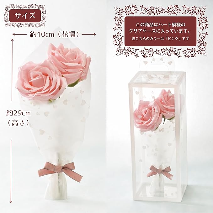 ポピー名古屋 ソープフラワー シャボンフラワー 造花 ギフト プレゼント 2輪ブーケ バラ 花束 約29cm クリアケース付き SBL-151 ピンク