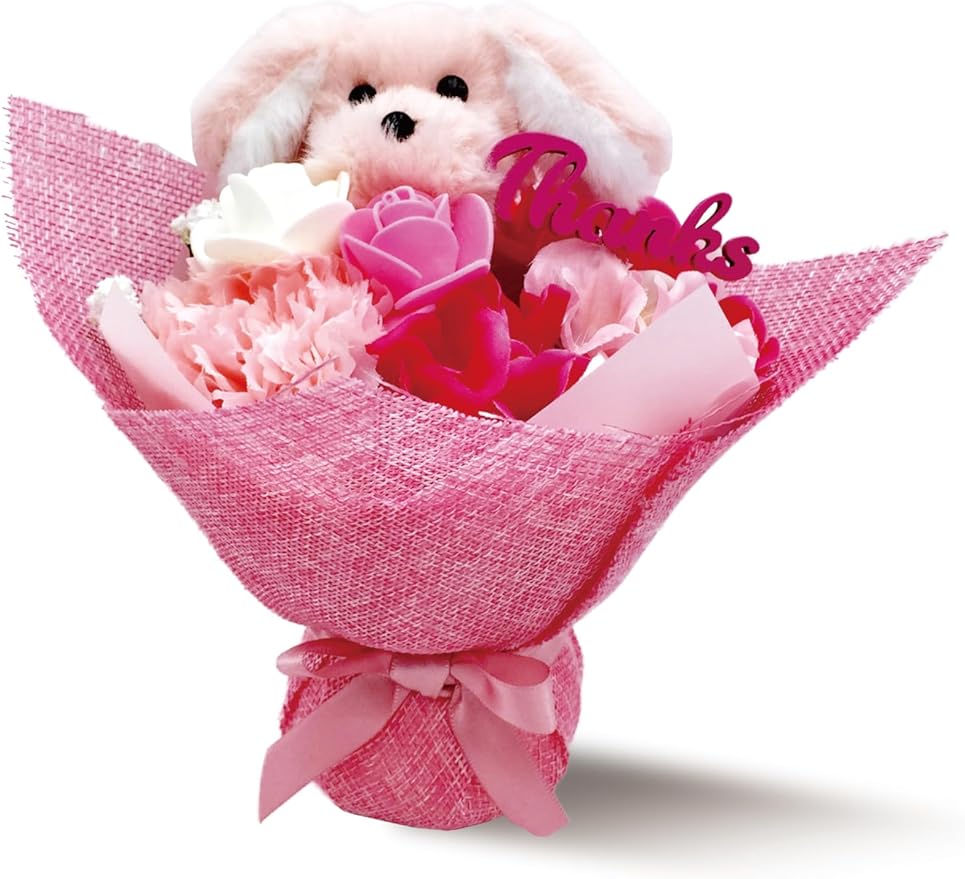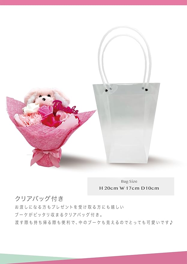 [ 2025年 クリアバッグ付き ] アーティフィシャルフラワー ブーケ ギフト 贈り物 花束 誕生日プレゼント 花 誕生日 母の日 母の日ギフト マスコット 卒業式 卒業 合格 入学 お祝い 贈り物 造花 ふわふわ イヌ ピンク ホワイト 花 インテリア ギフト A (プードルブーケLTP (HZD-9419C))