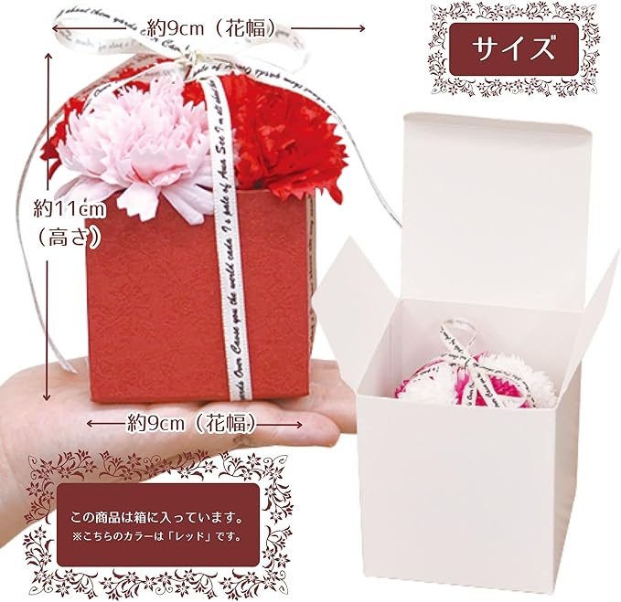 ポピー名古屋 ソープフラワー シャボンフラワー 造花 ギフト プレゼント フラワーBOX カーネーション ボックス 約9cm 箱付き S-111 ローズピンク