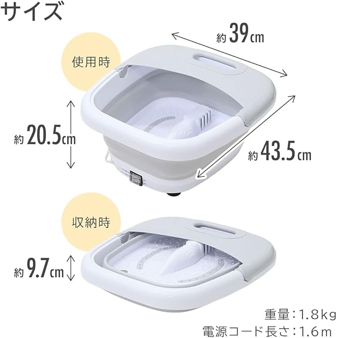 Bonarca 折りたたみ フットバス 足湯 バケツ 保温 40℃ バブル機能搭載 AC100V 足湯用バケツ 足浴器