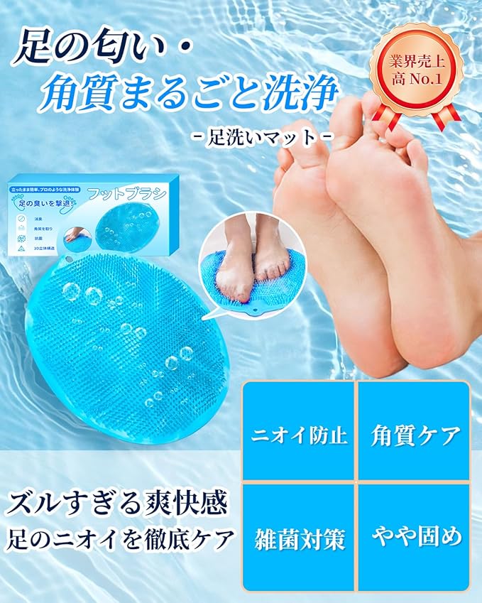 足洗いマット【2025新発売 人気】AJL フットブラシ 足裏ブラシ 足ブラシ 背中 ブラシ 足の臭い対策 角質ケア 吸盤付き 滑り止め 足の匂い 消しお風呂 抗菌 柔らかい 男女兼用 子供
