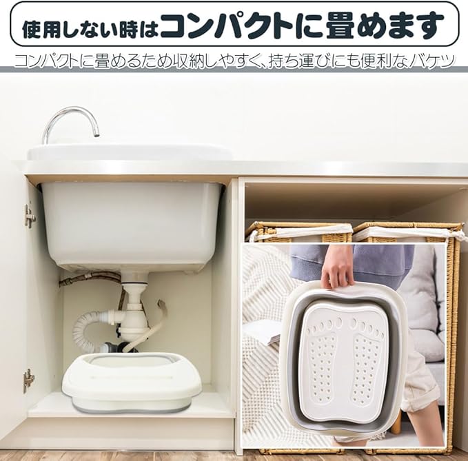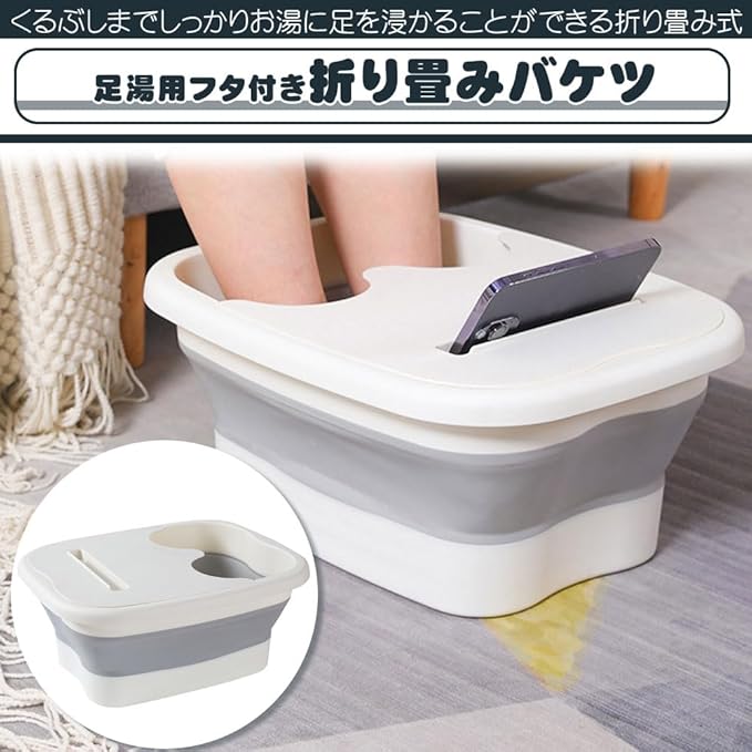 大容量フットバスバケツ 家庭用 コンパクト お湯を入れるだけ リラックス 足湯 (ホワイト)