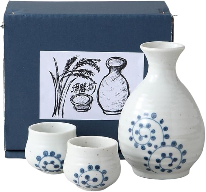 伝統的な日本の美濃焼から生まれた、優美な蛸唐草模様の酒器セットです。徳利1個(φ8.5 H12.6cm)と盃2個(φ4.7 H4.5cm)の上品な組み合わせで、熱燗でも冷酒でもお楽しみいただけます。高品質な磁器製で、日本の職人技が光る美しい仕上がりです。ボール箱入りで贈り物としても最適です。セット重量は400gで、コンパクトながらも存在感のある酒器揃えとなっています。