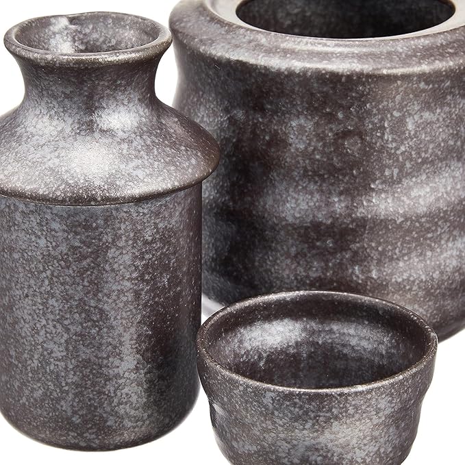 徳利 ぐい呑セット 径6 高10.2cm 140ml 黒銀彩 酒燗器セット (小) 冷酒 熱燗 磁器 美濃焼 日本製