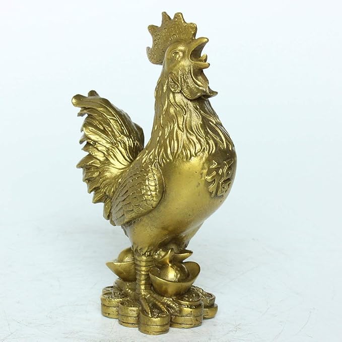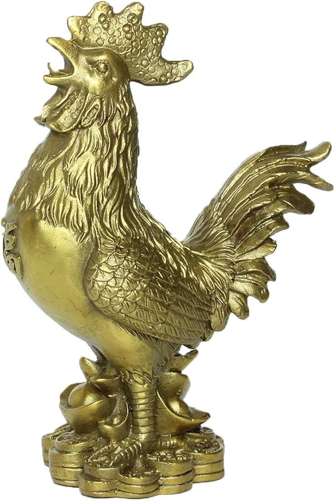 この銅製の「福の鶏 酉 とり」フィギュアは、約5.5cm x 3.5cm x 9.5cmのサイズで、約150gの重さです。ゴールドの表面はグロスフィニッシュで、アールデコのスタイルと宗教的なテーマを持っています。このフィギュアは風水のマスコットとして知られ、人に幸運をもたらし、金運や財運を引き寄せる力があるとされています。単体でインテリアにもお薦めです。